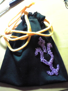 そういえば1日に一緒にギアス合わせをしてくれた、コス先輩の月鬼に素敵な巾着を作っていただきました。中に東京土産(浅草かな?)の飴が入っていて、二重にうれしかったのでパチリ。ビーズで刺繍をしてくれていたのですがクオリティが高すぎますよ先輩。知る人ぞ知るあのマーク。貴女を友人に持てたこと、誇りに思います^^